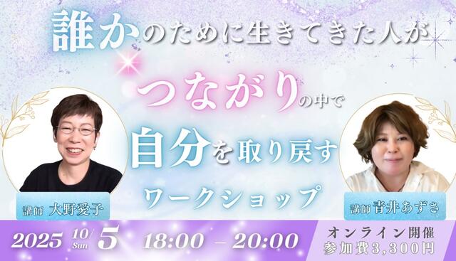 大野愛子カウンセラー&青井カウンセラーのワークショップにゲストカウンセラーとして参加させていただきます!